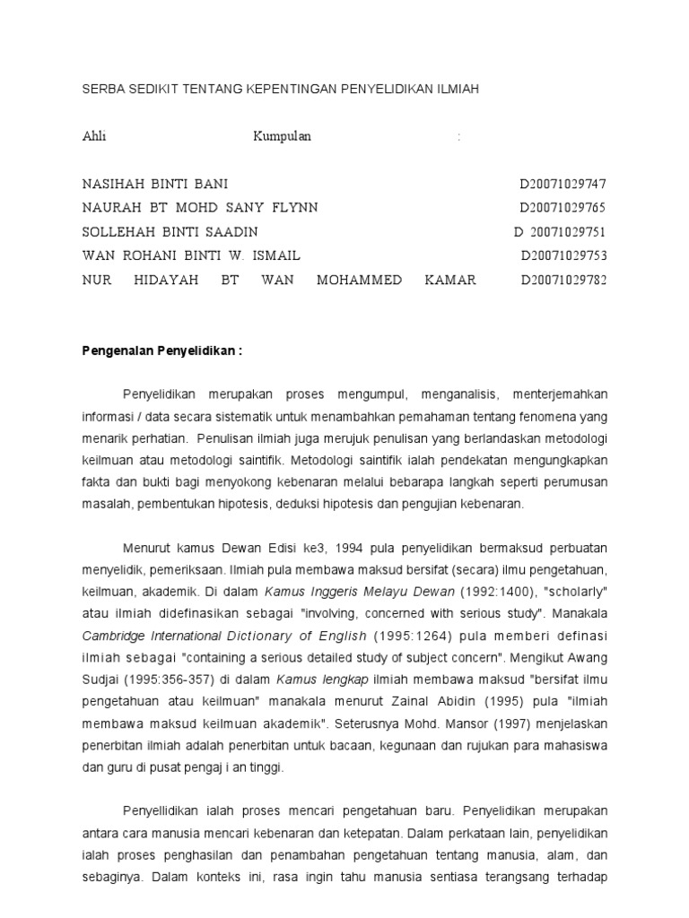 Serba Sedikit Mengenai Kepentingan Penyelidikan Ilmiah Pdf